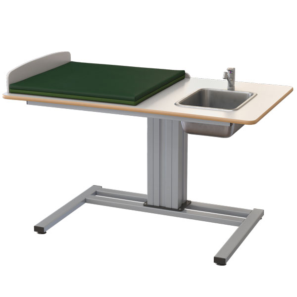 Elektrisk heve- og senkbart stellebord, enkel justering med håndkontroll.