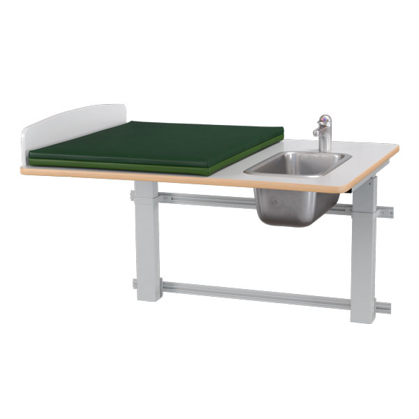 Vegghengt elektrisk heve- og senkbart stellebord, enkel justering med håndkontroll.