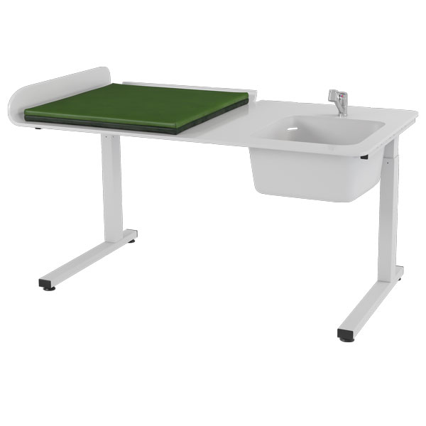 Elektrisk heve- og senkbart stellebord, enkel justering med håndkontroll.