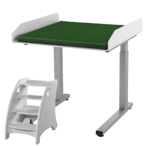 Elektrisk heve- og senkbart stellebord, enkel justering med håndkontroll.