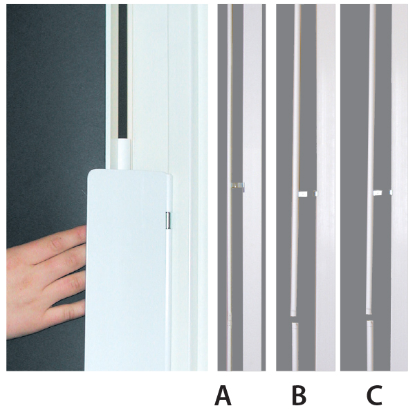 En fjærbelagt plate sikrer innsiden av døren. Enkel og holdbar sikring som er tilpasset de ulike hengsel og dørvariantene.