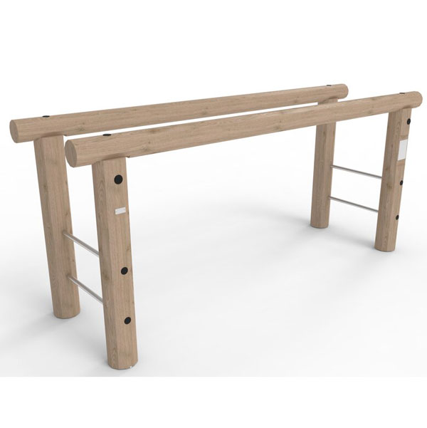 Horisontale bommer i tre med trinn er et allsidig utstyr designet for utendørs treningsområder. Den er først og fremst rettet mot dips-øvelsen for trening av triceps og bryst. Verktøyet støtter også en rekke andre øvelser, noe som gjør det til et multifunksjonelt treningsverktøy.