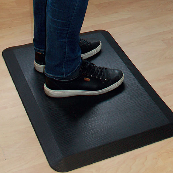 En ergonomisk avlastningsmatte egnet for stående arbeid.En myk og lyddempende arbeidsmatte med overkant av herdet plast.