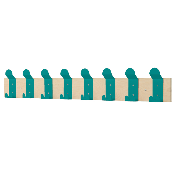 Pulverlakkert doble kroker i metall. Montert på klarlakkert list i bjørk kryssfinèr.