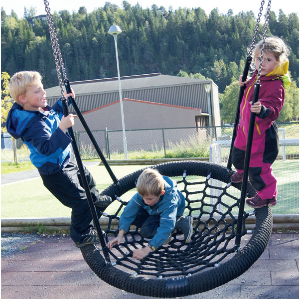 Kurvgynge, også kalt fugleredehuske med plass til flere barn! Husken er 120 cm eller 145 cm i diameter.