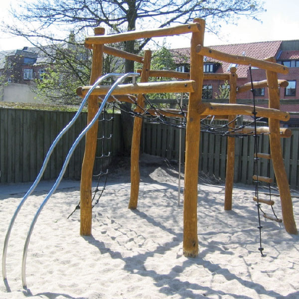 Rutsjerør, brannmannsstang, knutetau, klatreplate, nett- og stige gir adgang til det liggende nettet.
