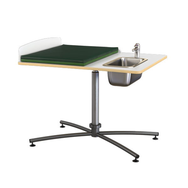 Heve- og senkbart stellebord uten strøm.