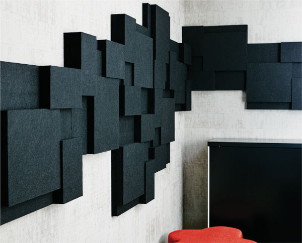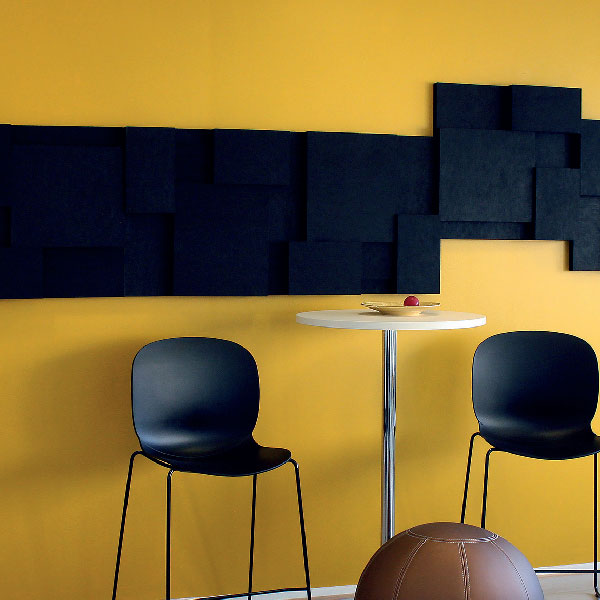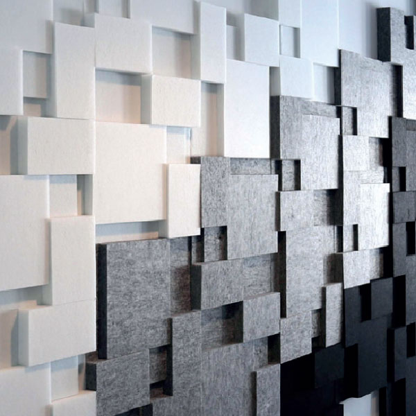 Lydabsorbenten varierer i tykkelse fra 30-80 mm utskjært i rektangulære og kvadratiske mønster.
