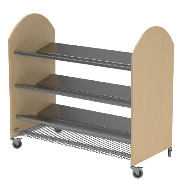 Alle kanter og hjørner er mykt avrundet. Hyllene er varmgalvanisert for å motstå smuss og vann. Vognen har fire hjul, 2 låsbare.